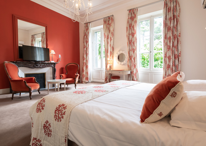 Chacune offre une vue sur le parc ou la cour d’honneur, créant un cadre paisible et lumineux, idéal pour un séjour prolongé en Occitanie pour deux personnes. Les chambres disposent d’une salle de bain avec baignoire, d’un lit king-size, queen-size ou twin avec couette douillette, air conditionné, Wi-Fi, minibar, coffre-fort, TV écran plat avec chaînes satellites, radio-réveil, dock pour smartphone et machine à café Nespresso.